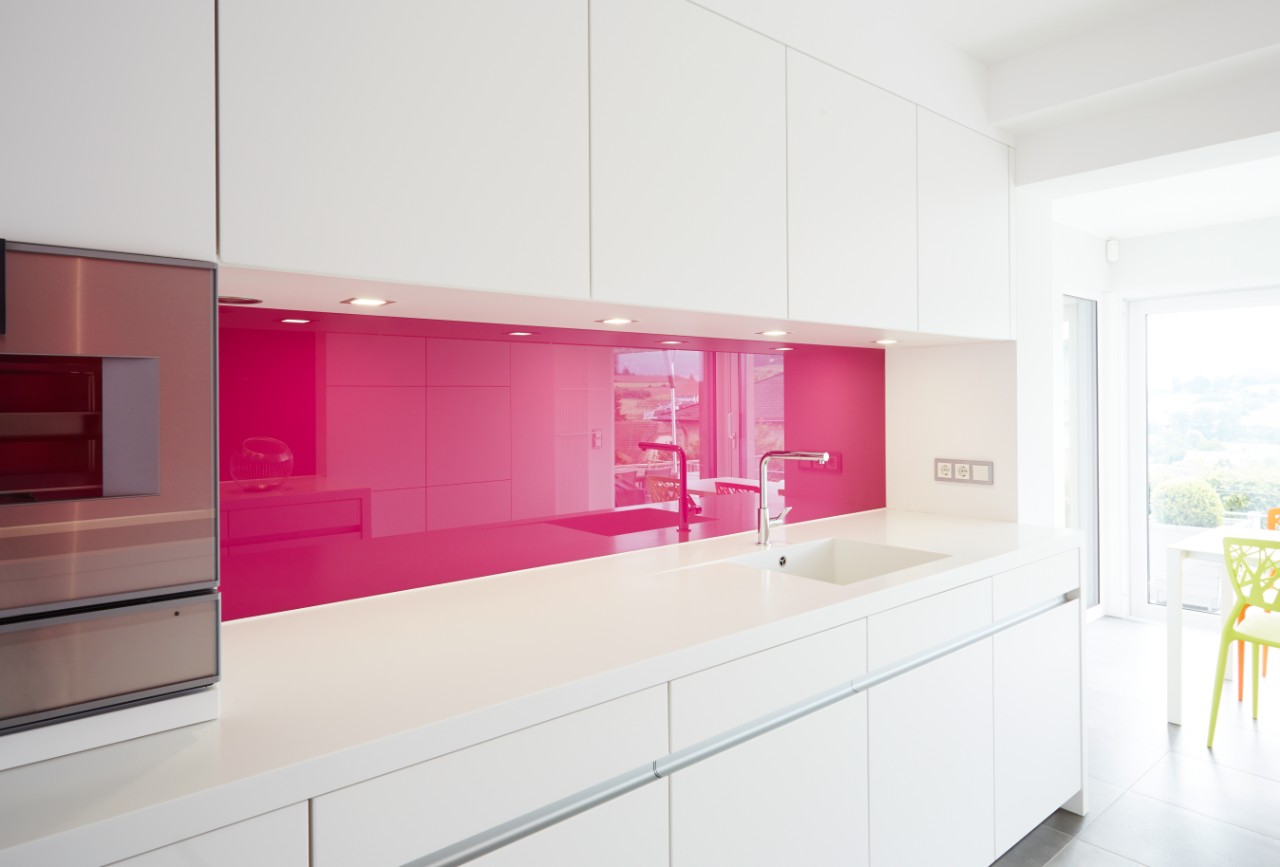 A special paint is added to one side of the glass and dried to produce a uniform lacquered effect. The color options offer many possibilities, from neutral to colored tones. Painted glass is opaque and does not transmit light. It can be used in many interior applications such as backsplashes in kitchens and bathrooms, for furniture and sliding doors. It can also be used for spandrel glass in curtain wall facades to hide structural building components.
