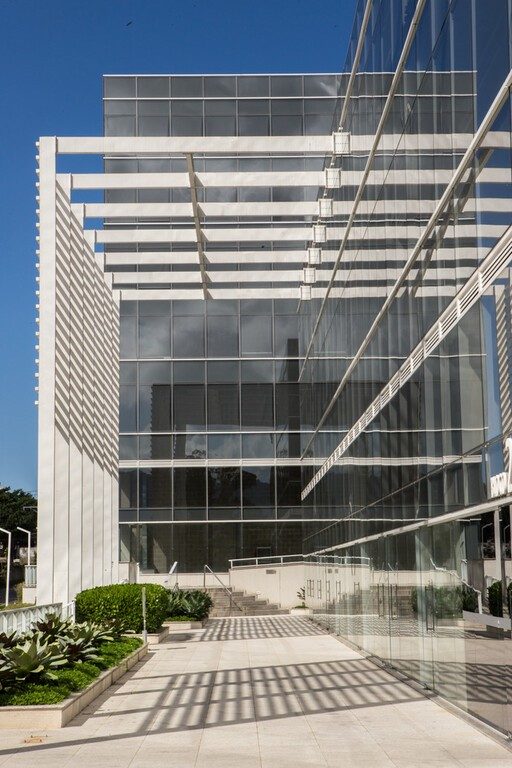 The A5 office building located in Rio de Janeiro has a stunning looking façade that uses Guardian SunGuard™ Solar Light Blue 52. The coated solar control glass provides all the optical clarity and energy performance that is traditionally associated with sputtered coatings. The glass plays a very important role in the design and function of the building. It helps to reduce glare from the sun and to lower the demands on the building’s air conditioning, as well as to improve control of temperatures inside the structure.