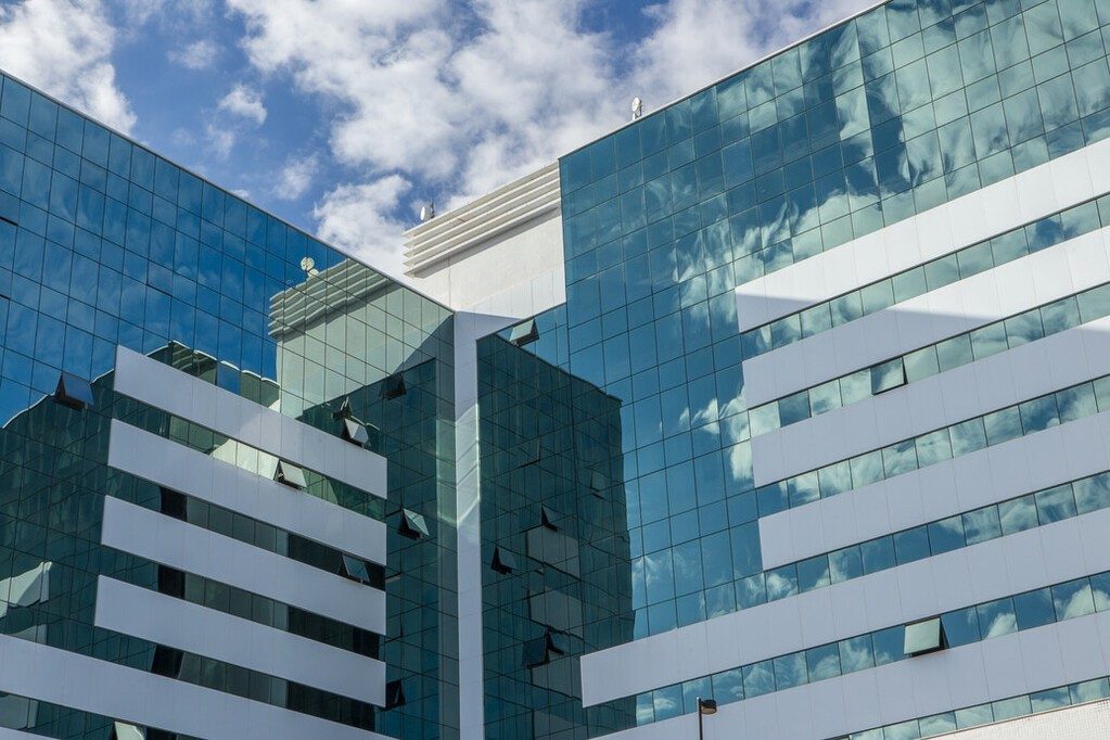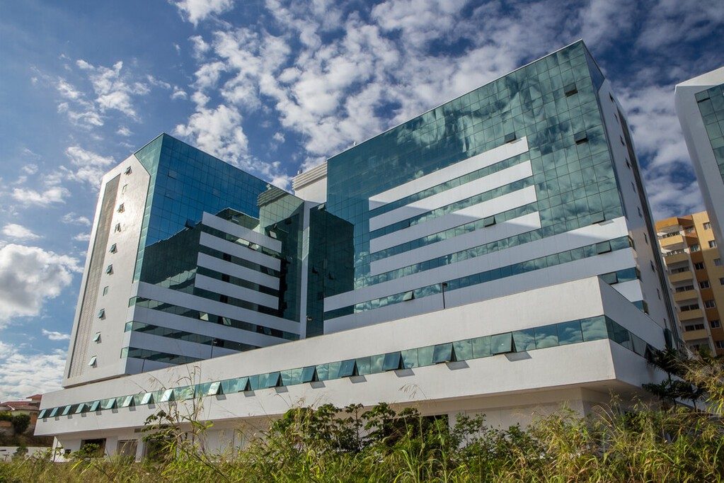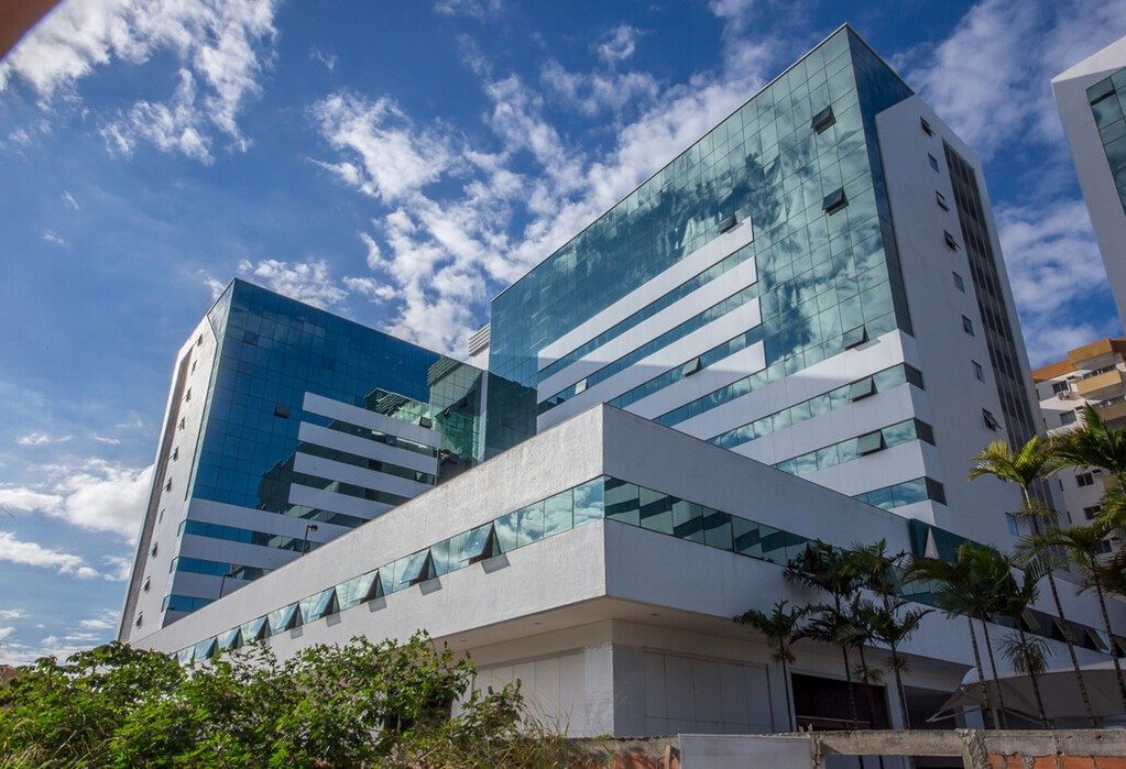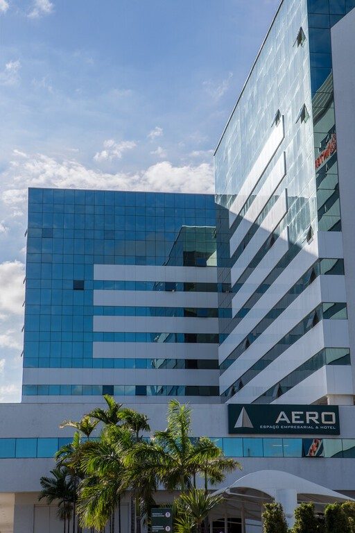 Aero Espaço Empresarial & Hotel is a mixed-use facility located in the Bahia area. The development consists of two business towers with commercial rooms, a hotel tower, and a mix of service stores. The building facade features Guardian SunGuard™ Solar Silver 20 on green glass. As well as giving the building an elegant green appearance, the glass also helps contribute to the building's energy performance, while providing privacy to guests and visitors thanks to its reflective appearance. In order to contribute to thermal comfort, the technology built into the product reflects part of the solar energy, while letting natural daylight into interior spaces.