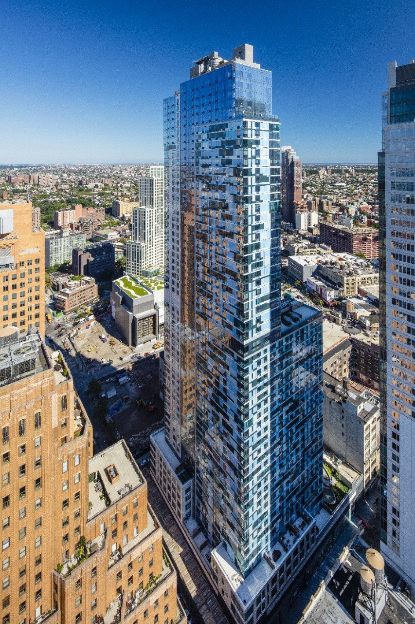 A unique concept for a luxury rental building, the property offers two very different living experiences: On the lower floors, AVA DoBro provides an eclectic, neighborhood-inspired design, appealing to those who want a closer connection to the surrounding community. Avalon Willoughby Square, on floors 31 to 58, features a sophisticated design, creating a luxurious environment that looks out on the city through SunGuard® AG 43 on clear .
