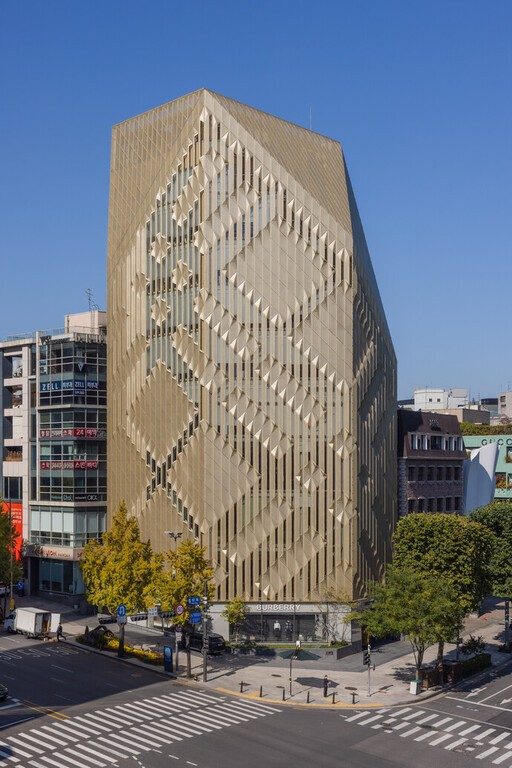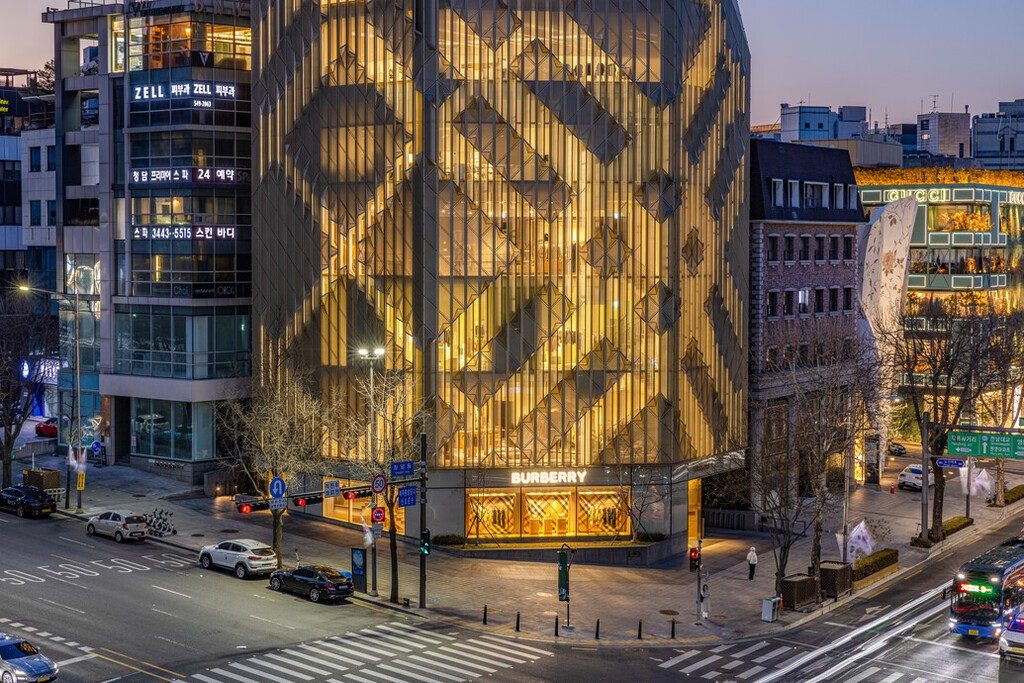 Designed by Tetra Architects Inc., the Burberry Asia flagship retail store in Cheongdam-Dong, Seoul, is a 12-storey, 4,000 square-meter building with a strikingly attractive glazed façade that resembles the brand’s famous gabardine, plaid textile trench coats.