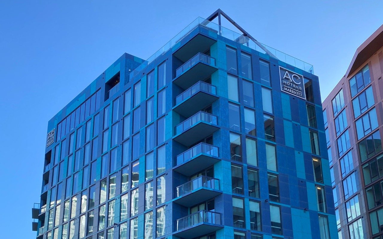 The façade features terracotta colored metal panels on the apartment buildings and blue metal panels for the hotel. The neutral appearance of SunGuard ® SNX 62/27 on clear glass works well with both color schemes, creating cohesion across the project. The glass also meets thermal performance requirements, helping to secure LEED ® Gold for the residential buildings.