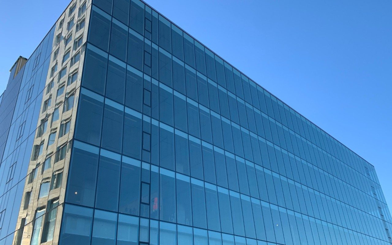 Light loving, heat managing SunGuard ® SN 68 on clear glass curtain wall is key to this enchanting gateway to Old Montreal.