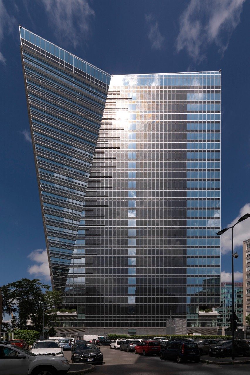 Designed by Pelli Clarke Pelli Architects, Gioia 22 is a 120-meter-tall landmark office building in Milan, Italy. Gioia 22 uses onsite renewable energy sources including 6,000 square meters of photovoltaic panels that provide a high proportion of the energy required for heating and cooling.