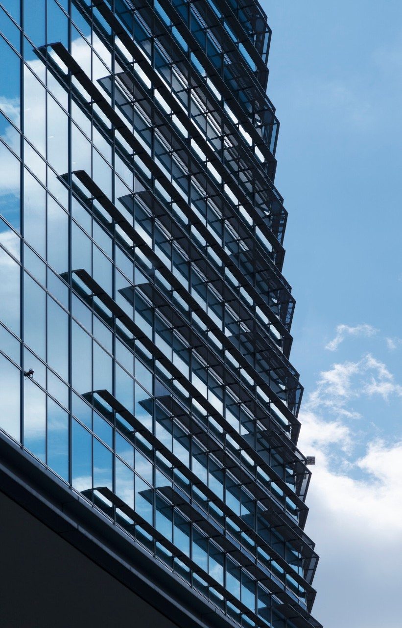 The building’s strikingly angular shape looks like the sharply defined peaks of the nearby Alps. The highly reflective glazed façade uses three coated solar control glass products from Guardian.