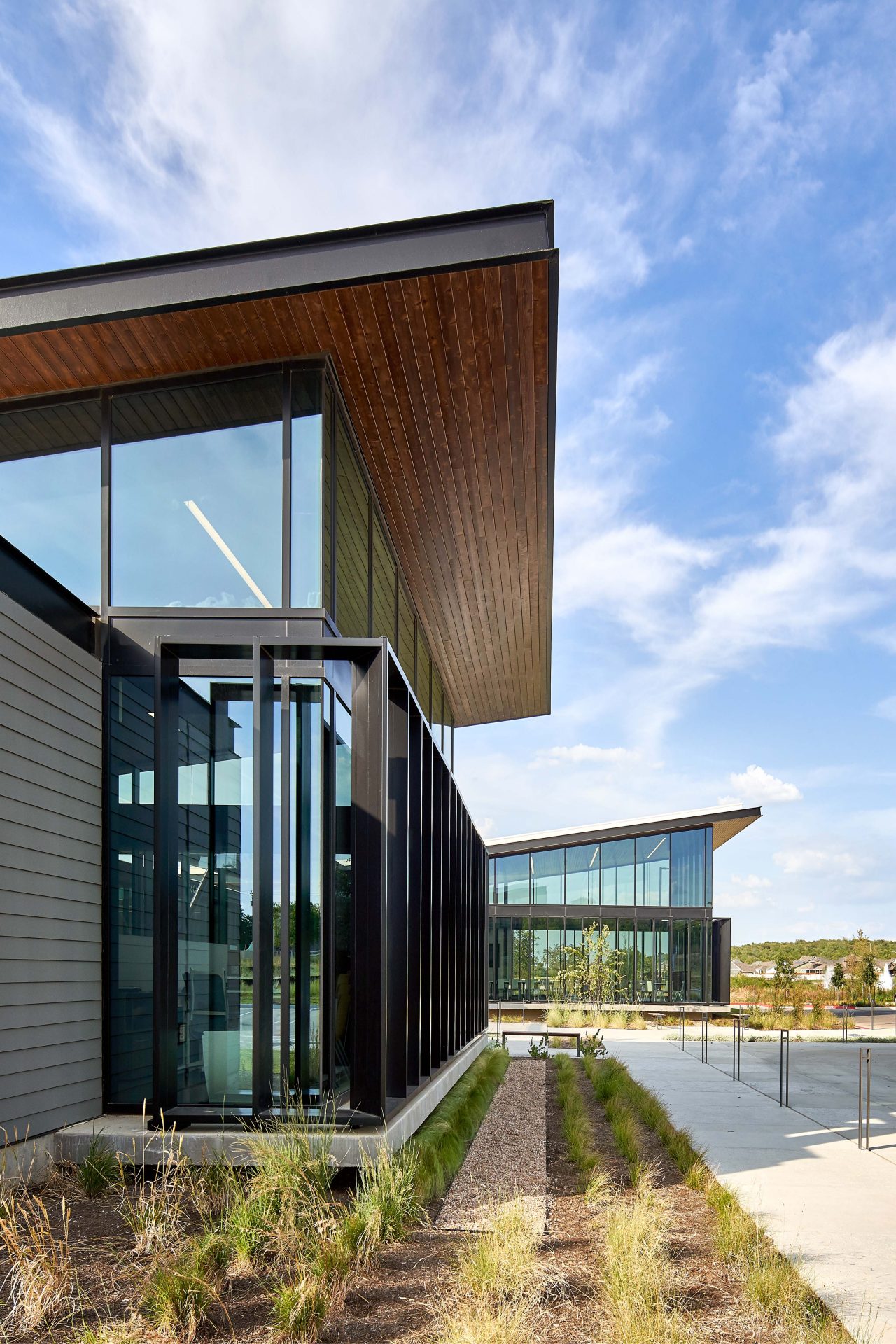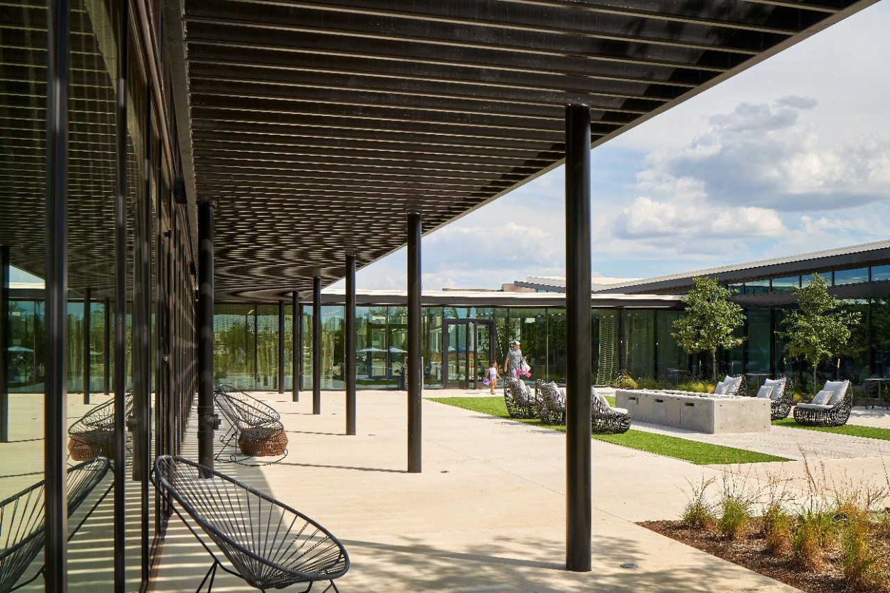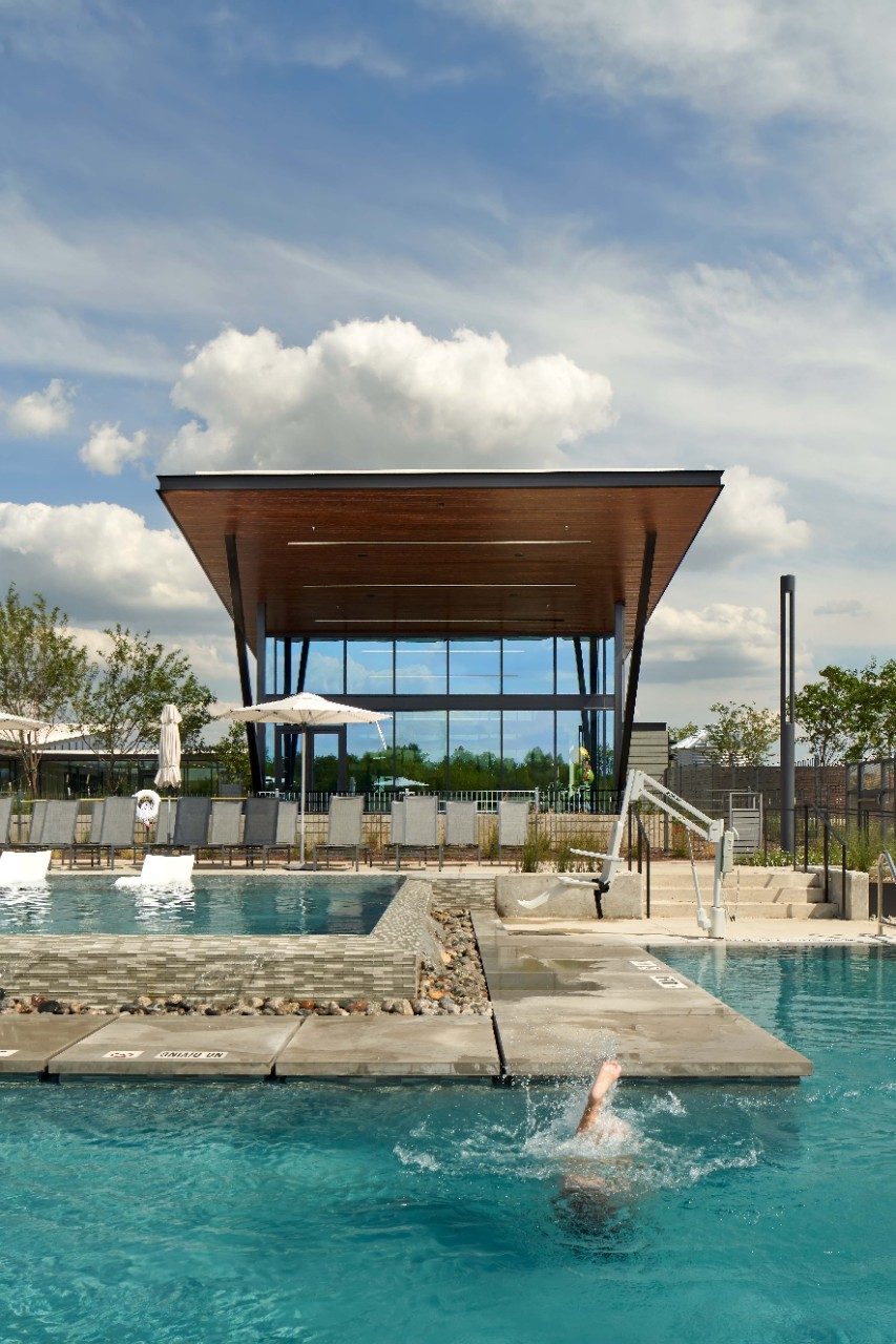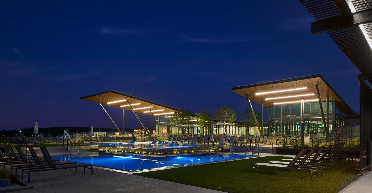 Union Park East is home to Easton Park's 14,000-square-foot amenity center, The Union. The facility includes a resort-style pool, club-style fitness facility, event space, gaming room, outdoor fireplace, jam station and more. Gensler specified SunGuard® SNX 51/23 on clear glass for the building.